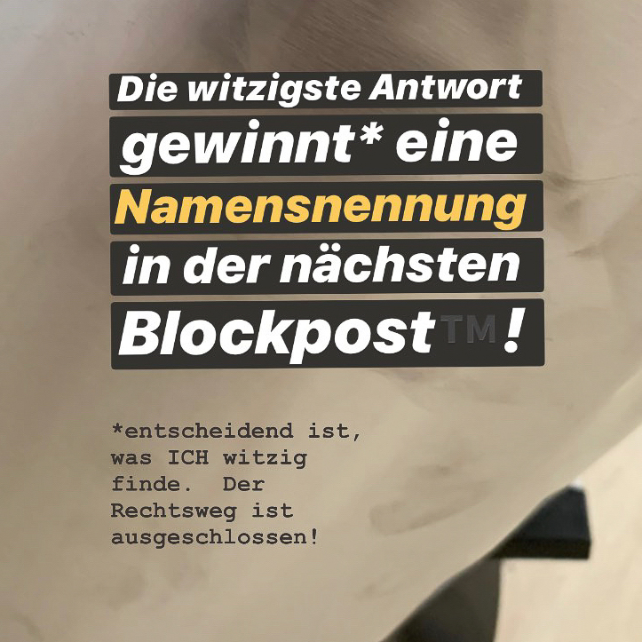 „Die witzigste Antwort gewinnt eine Namensnennung in der nächsten BlockpostTM!“
