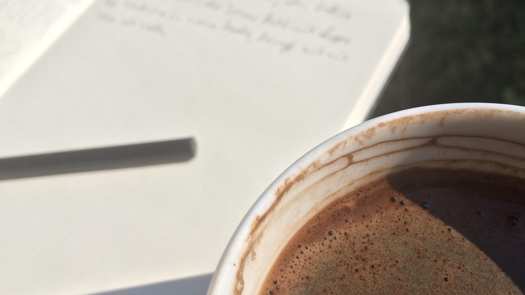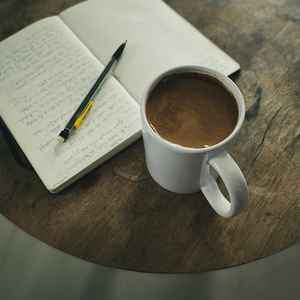 Der Tisch inmitten der Filiale einer Caféhauskette ist gerade groß genug, um eine Tasse und meine Schreibutensilien, ein Notizbuch und einen Bleistift mit integriertem Radiergummi zu beherbergen. Ja, Sie ahnen es, ich bin zum Schreiben hierhergekommen.