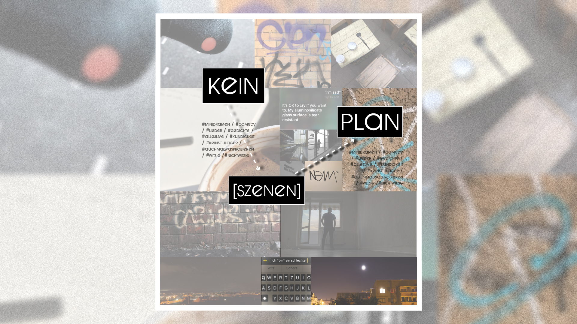 Der Text, den es heute zu lesen gibt, ist schon etwas älter und inzwischen Teil eines Kleinkunstprogramms mit dem treffenden Titel KEIN[SZENEN]PLAN. Und da das zurzeit ja nicht vor Publikum gespielt werden kann und eventuell 1 bis fümmf Leser*innen auch sonst Schwierigkeiten hätten, sich das hier anzuschauen…