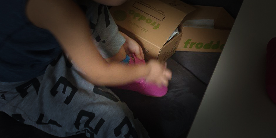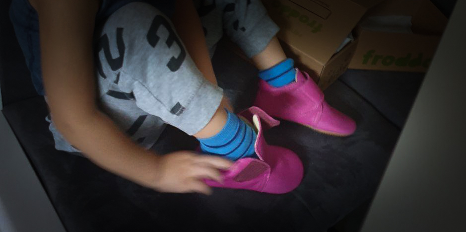 Froddo Schuhe sollten es sein. Meine innere, dauerhysterische Übermutter machte Luftsprünge, eine Marke mit dünner Barfußsohle, die man so hübsch demonstrativ zusammenrollen kann. Jes. Gutes Kind.