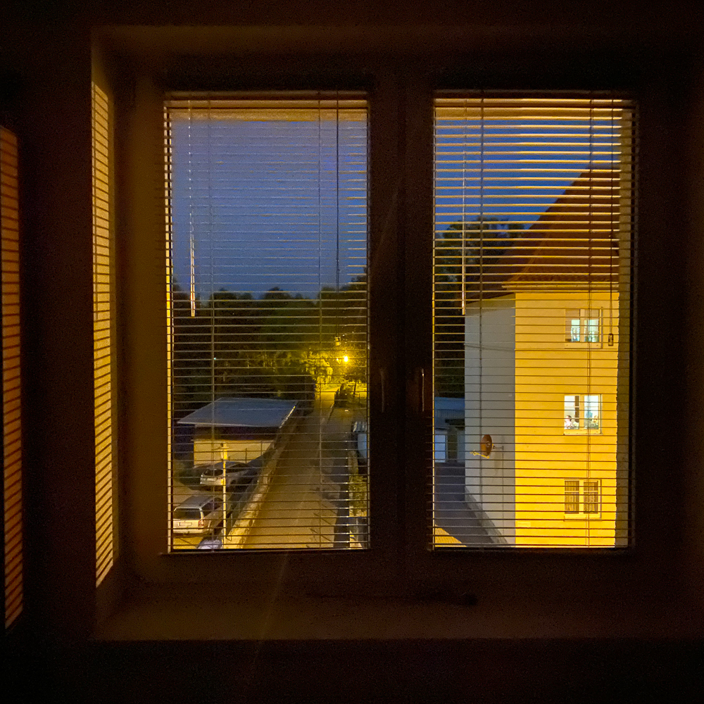 Idee: Die schon beim Zubettgehen geöffneten Jalousien als Symbol der Hoffnung, des Willens, positiv in den kommenden Tag zu gehen, Offenheit, Zuversicht… mir wird schlecht. Zu viel Zucker. Fast schon fellbällchenkotzigTM.