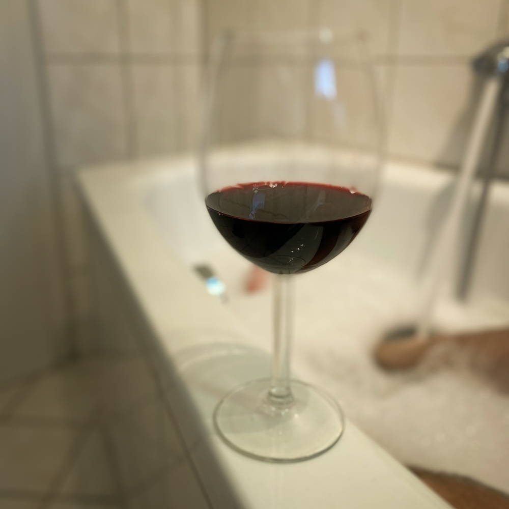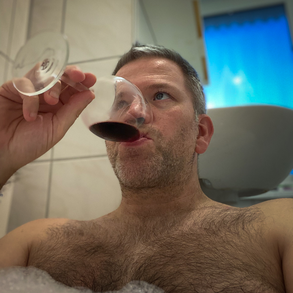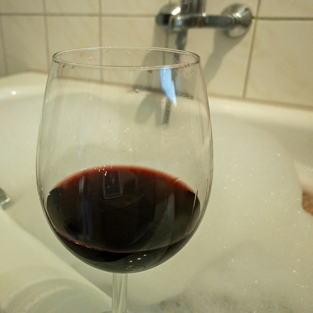 Hab ich mir als Begründung überlegt, weshalb ich mich anschließend bei einem Glas Rotwein in die Wanne gelegt habe. The Thruth is, ich hätte das anyway so gemacht. Samstagsbad at it’s best. Obendrein ist das ‘ne gute Rechtfertigung, Wein- und Weinglasfotos in se BlockpostTM usen zu dürfen.