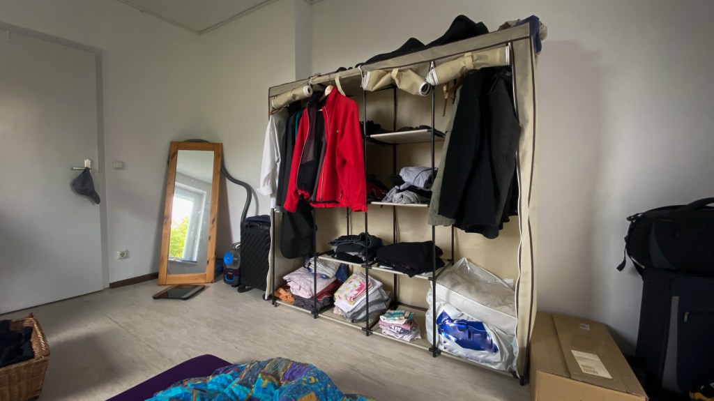 Das Schlafzimmer ist lediglich der Raum, in dem ich schlafe. Nicht mal da steht ein richtiger Schrank. Nein, es hat nur zu so einem komischen Zusammensteckteil gereicht, welches aus Gründen der User Friendliness eher selten verschlossen ist. Der Inhalt auch, mhm, sagen wir quantitativ übersichtlich, strukturell jedoch meist unübersichtlich.