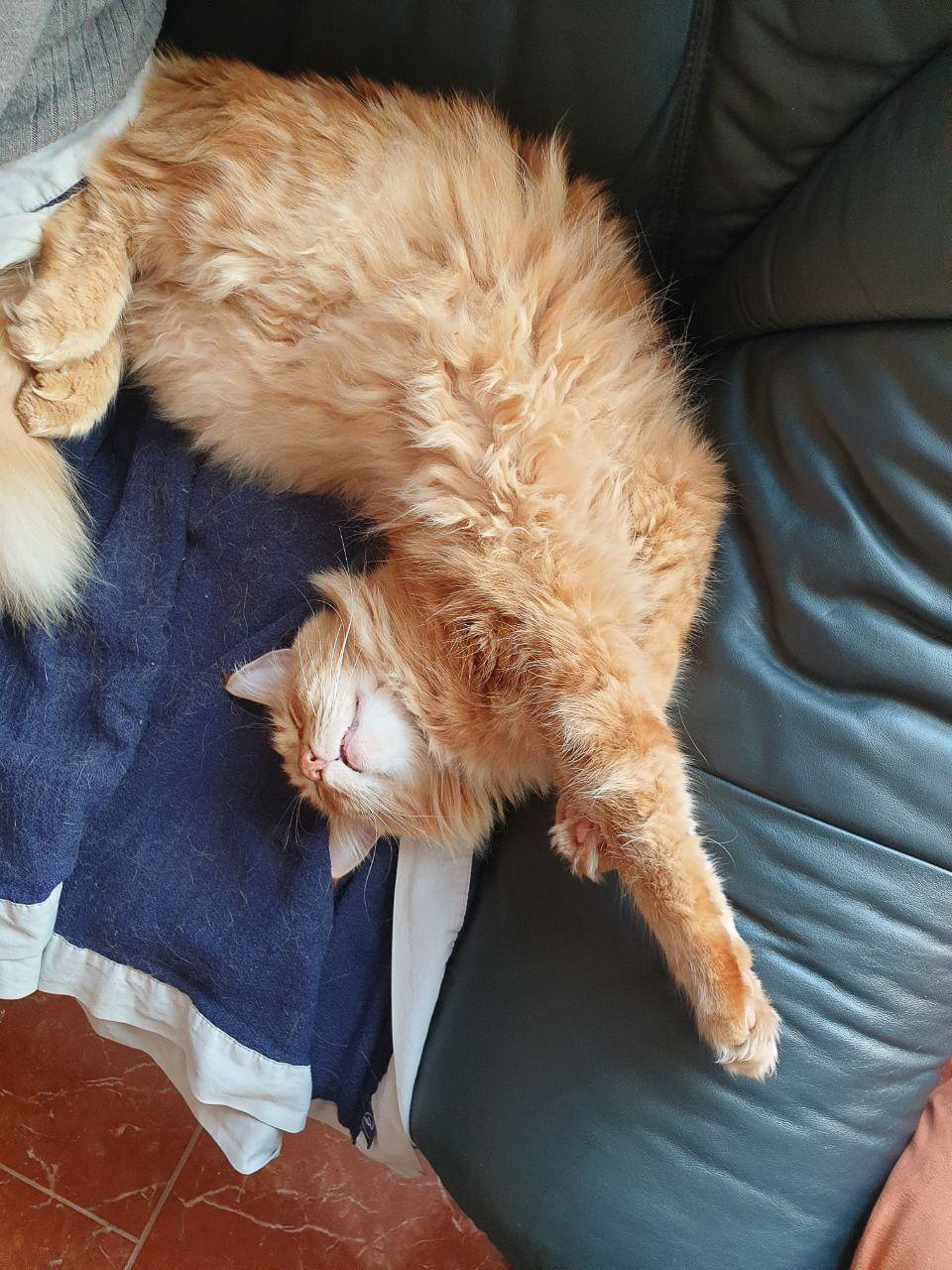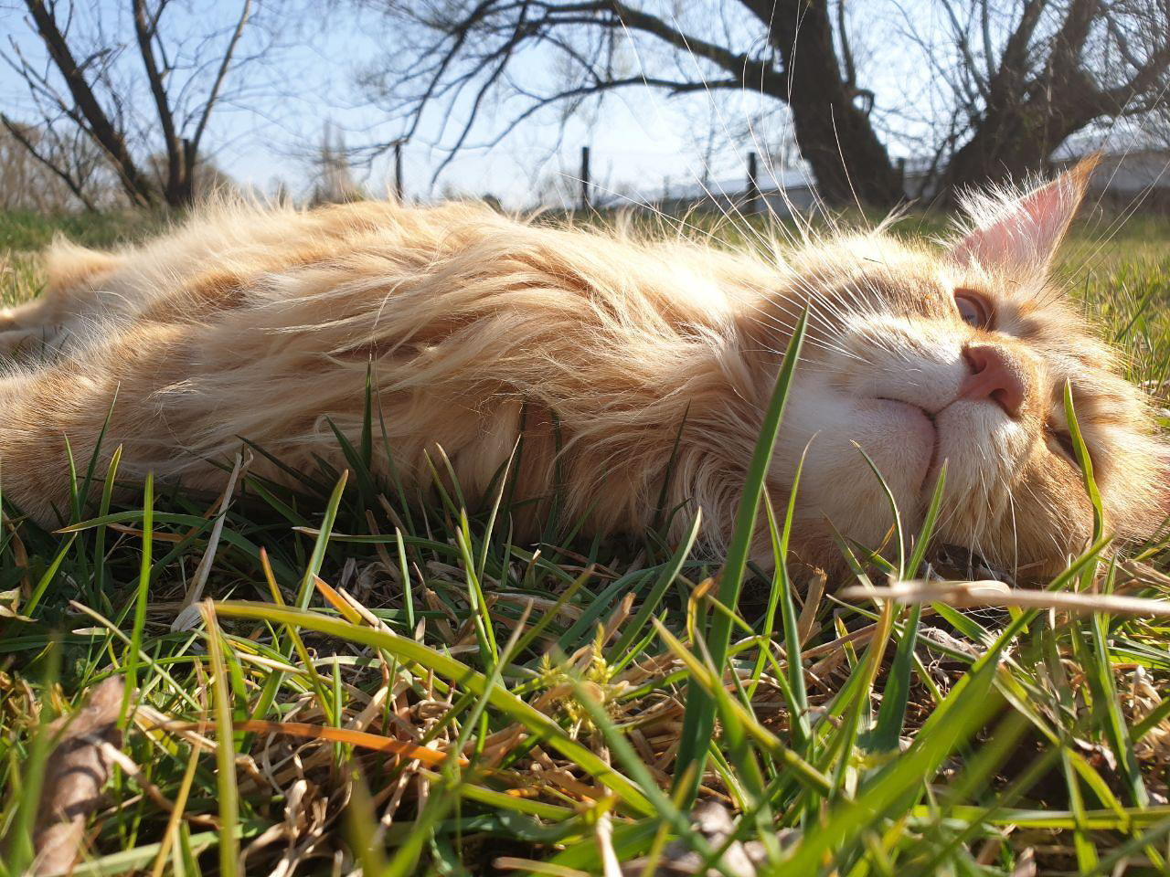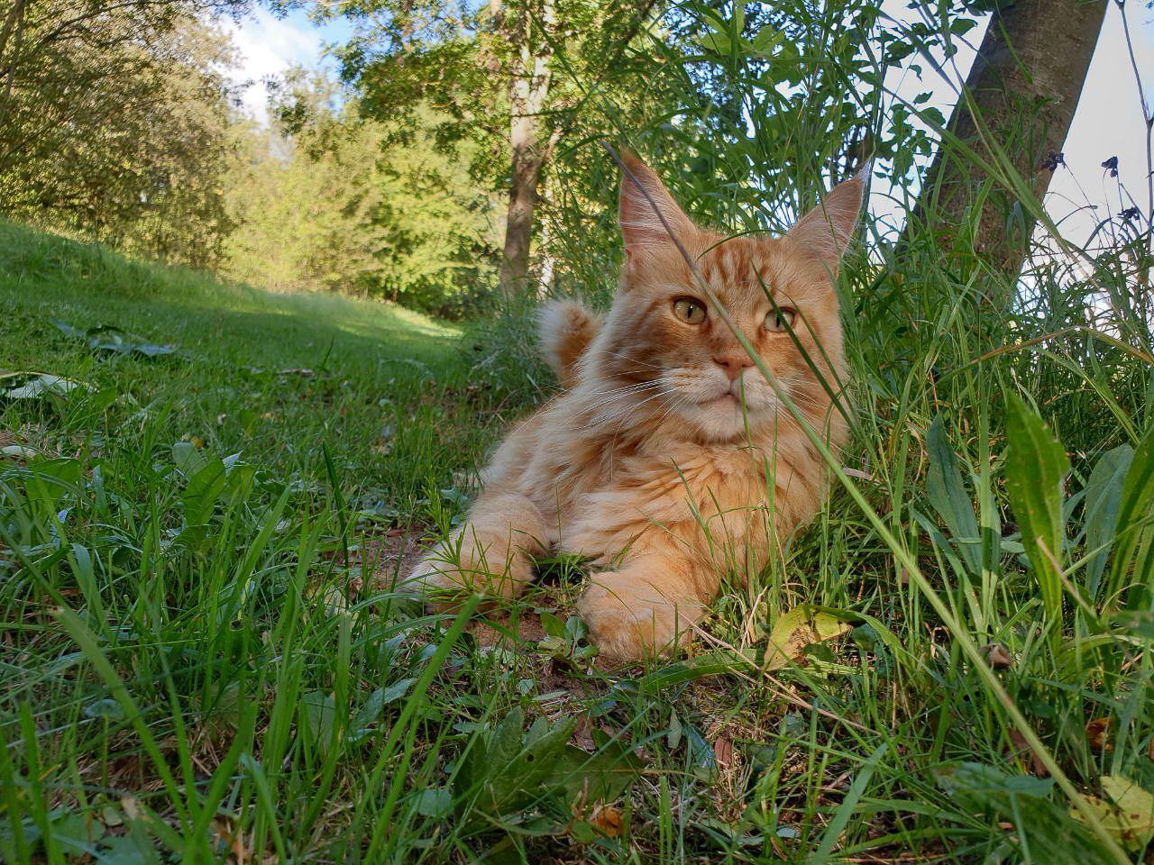 Ihr Vater hat die Rückfahrt fluchend mit einer Katze als Beifahrer verbracht. Er hasst Tierhaare. Aber er hat es gemacht. Das Auto wurde ausgesaugt, der Rest ihres Krempels unter großem Aufwand und Personenschutz aufs Festland zurück in die Normalität transportiert. Der Kater lernt zum ersten Mal Gras kennen. Hier ist kein Wind. Hier gehört er schon eher her. Dennoch fragt sie sich, was sich die Natur bei einer leuchtend orangenen Katze gedacht hat. Er sticht aus der Wiese heraus.