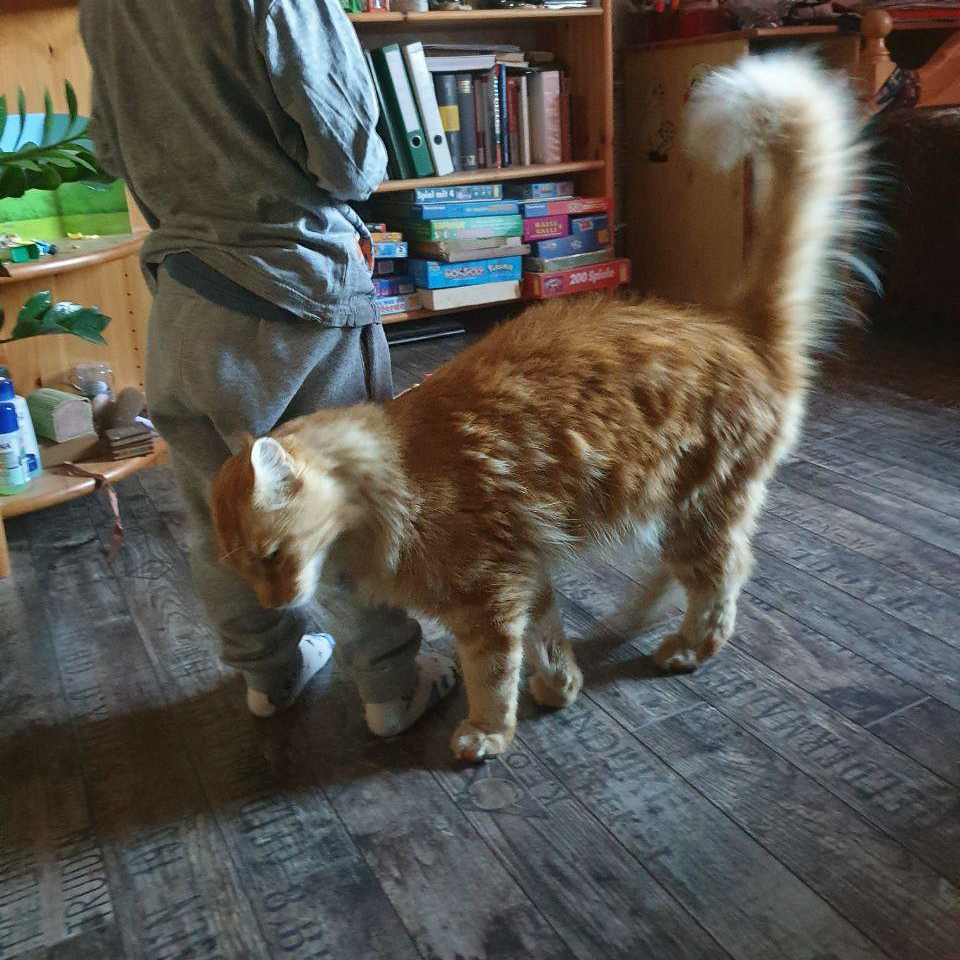 - rennt sie regelmäßig vor ihrer Katze weg, um Wege allein zu erledigen