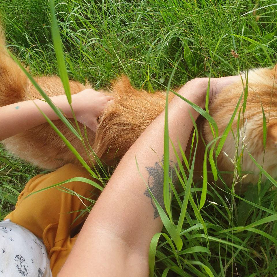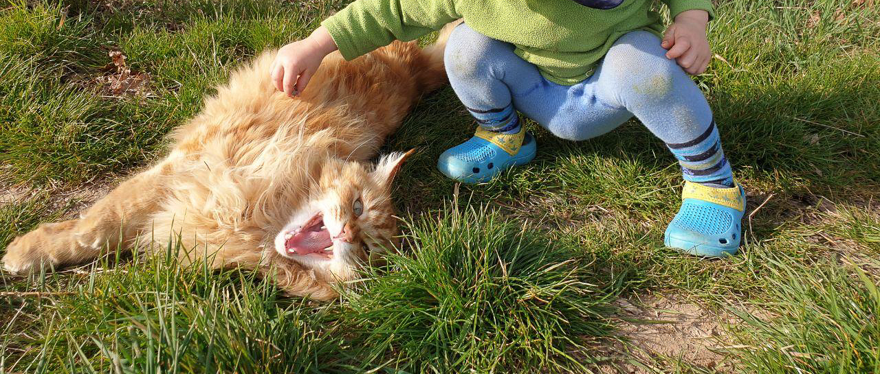 Er kommt humpelnd nach Hause. Mit Reifenspuren auf dem Fell. Sie trägt ihn rennend zum Tierarzt. Er hat Glück gehabt. Nur gestreift. Nichts gebrochen. Sie beobachtet ein paar Tage, wie er sich der Straße hinterm Haus nähert und stellt erleichtert fest, dass er nun gehörigen Respekt vor der Straße und den Autos hat.